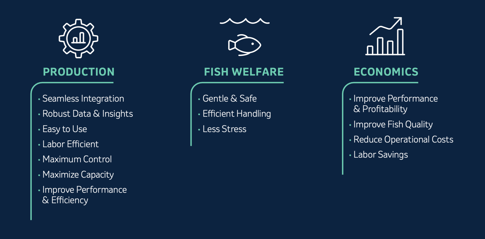 Our innovative production equipment and smart technology enable farms to operate efficiently. This makes fish handling, counting and measurement as easy as possible.