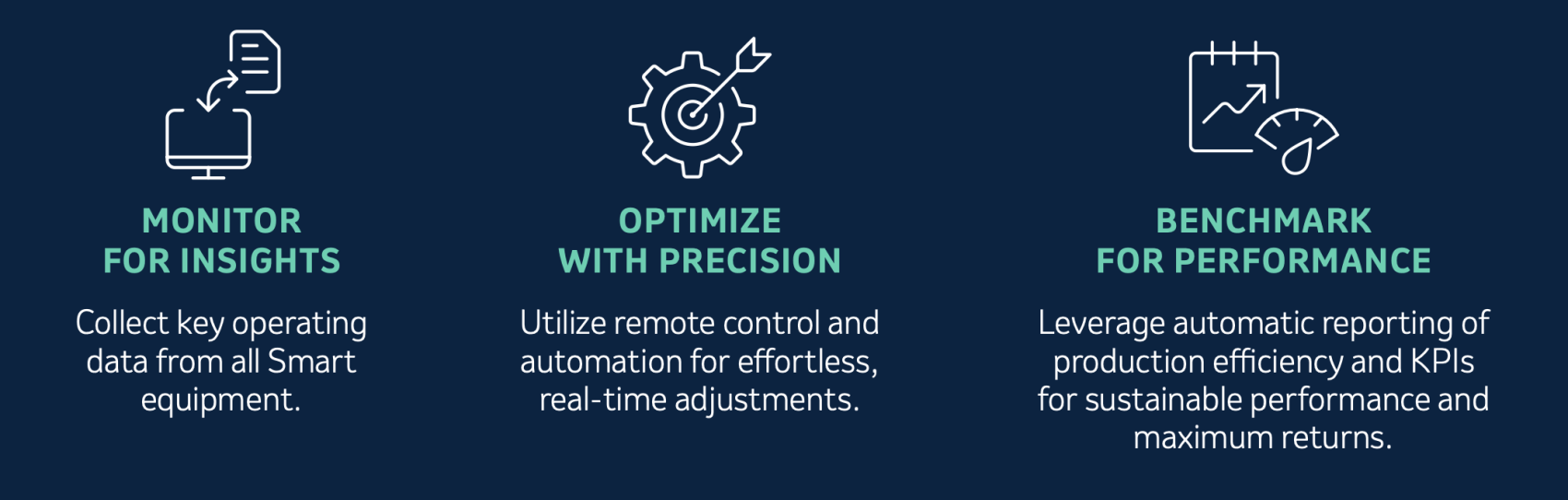 This revolutionizes production efficiency by leveraging real-time monitoring, remote control, automation, and reporting to deliver key insights for decision making and informed planning.