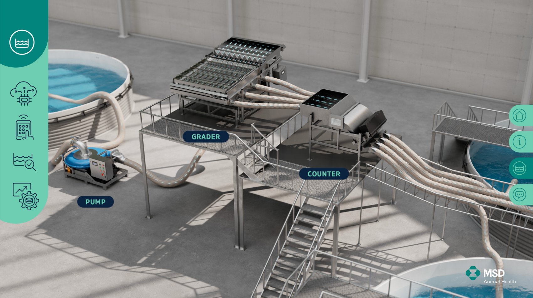 Built with farmers in mind, and with fish welfare at its core, our industry leading VAKI SmartFlow System connects all VAKI Smart Pumps*, Graders and Counters for full overview and control of the fish handling system.